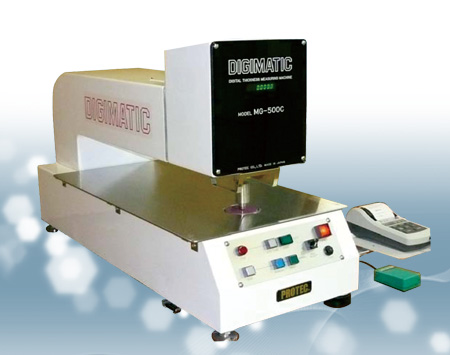 2、数码厚度测定机MG-500C,为确保设定后的条件稳定可以选择各种性能:测量台和测量头的形状、测量力(g)、 测量压力(kg/mm),以及一定的冲击力和稳定后的静载荷的设定等;